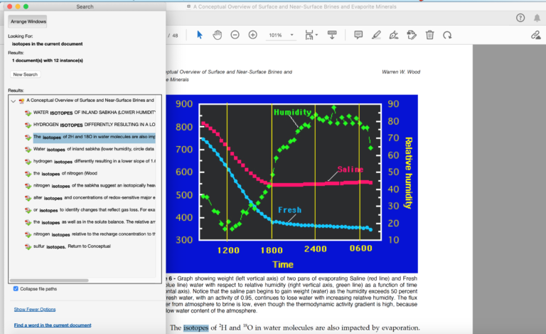 例如,在《表面和近表面盐水和蒸发矿物 的概念概述》一书 中搜索短语“isotopes”,将得到以下结果。